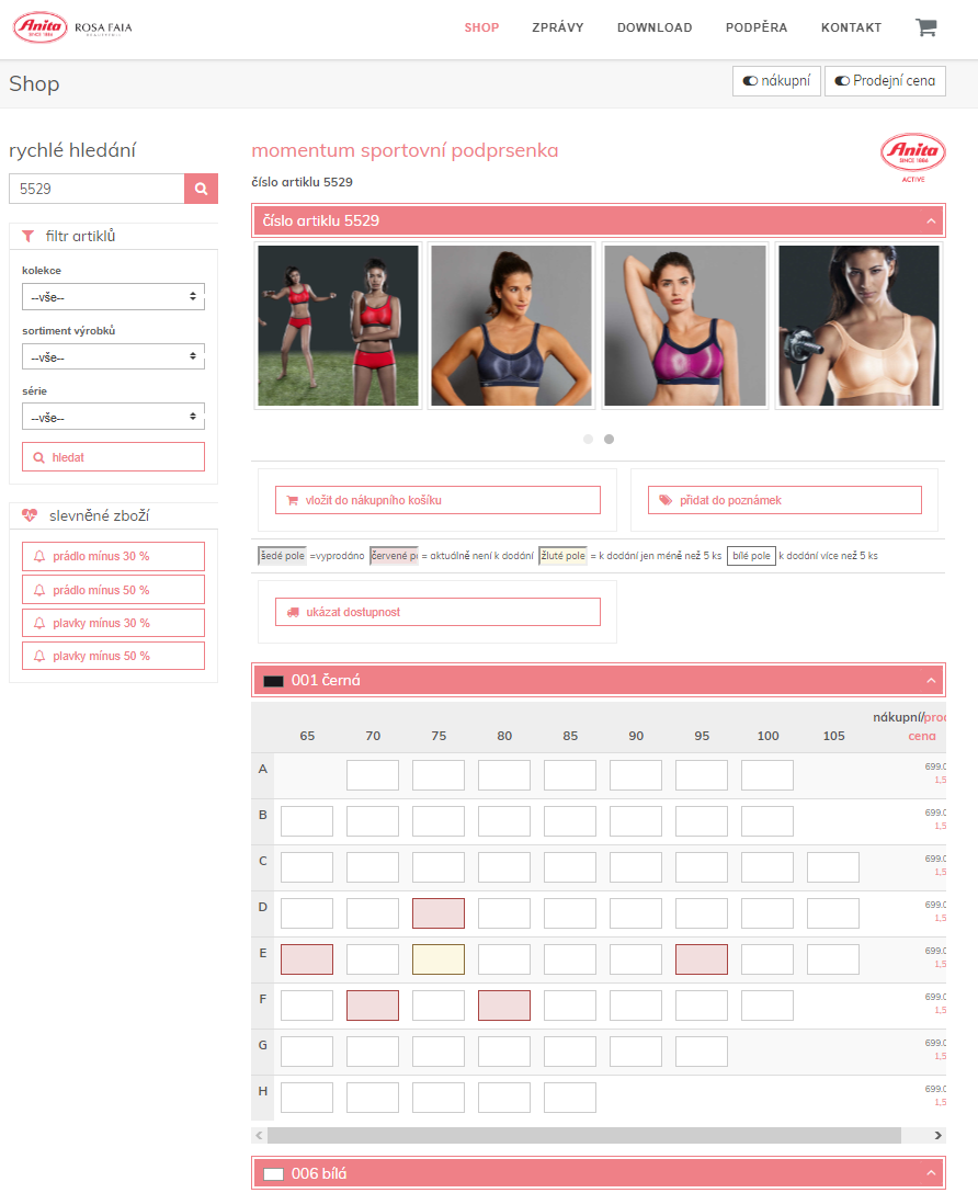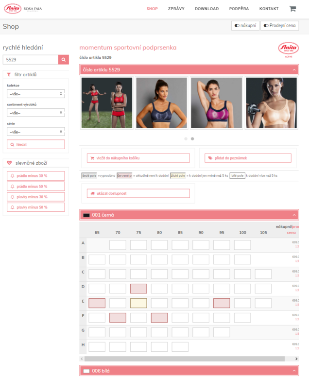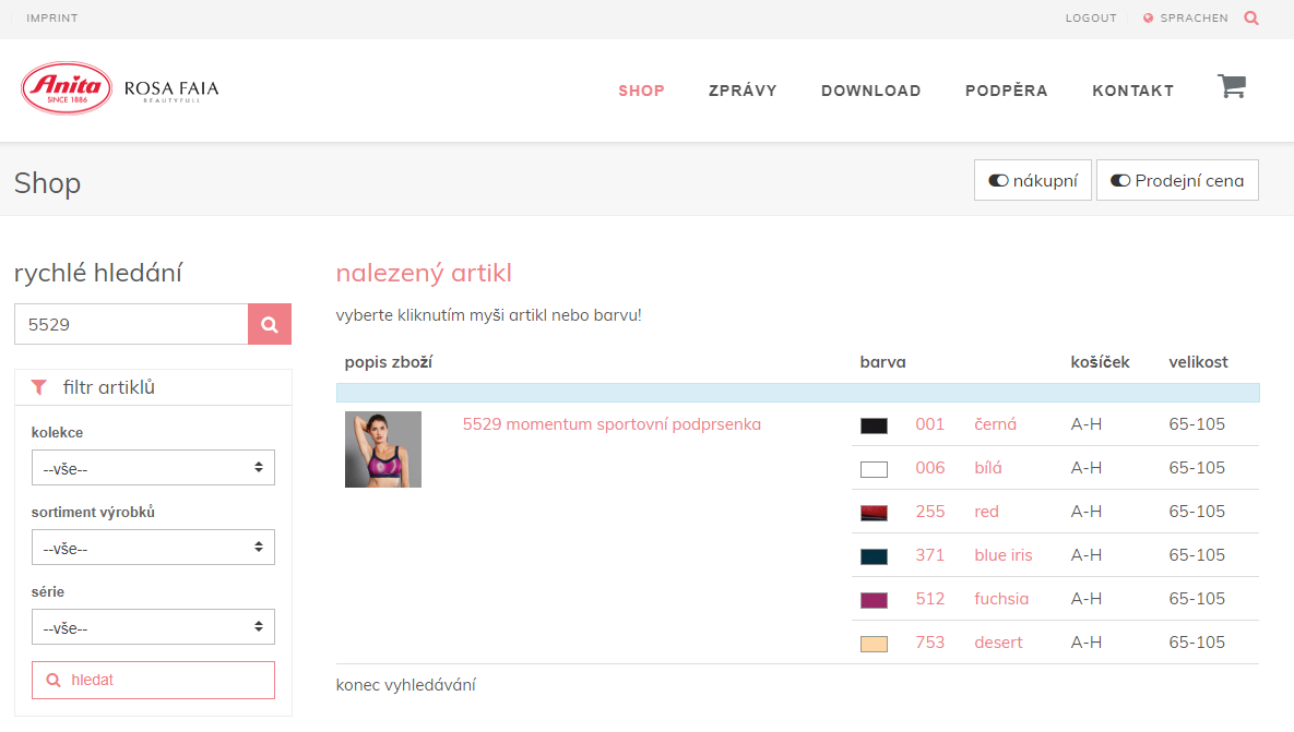 Chcete-li objednávku odeslat, klikněte na symbol nákupního košíku vpravo nahoře. Dostanete se přímo do přehledu objednaného zboží, které bylo dříve vloženo do košíku.