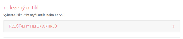 Rozšířený filtr otevřete kliknutím na řádek v liště "Rozšířený filtr", kde můžete provést další výběr podle typu výrobku, ročního období, barvy, šálku a velikosti: