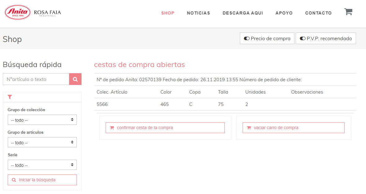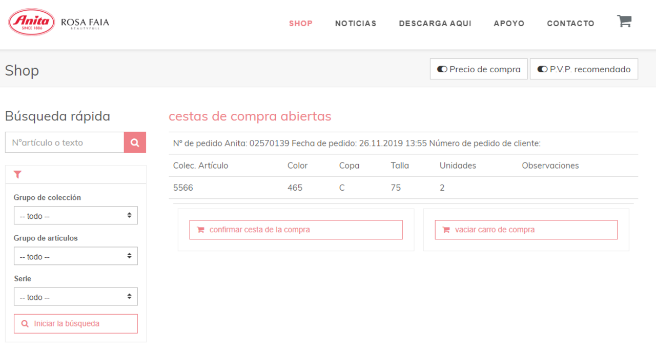 Su carrito de la compra se ha guardado correctamente. Si cierra el navegador de forma inesperada o no puede confirmar el pedido, no tendrá que repetir el proceso de compra de nuevo. Los productos que se hayan introducido en el carrito de la compra se guardan. Cuando inicie sesión de nuevo, se muestran directamente el carrito de las compras abiertas.