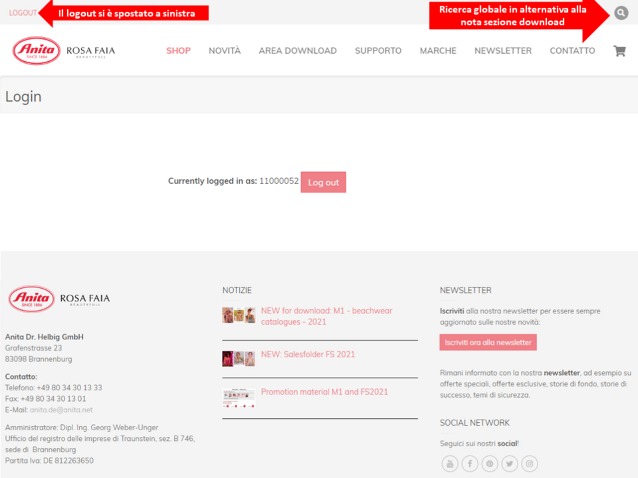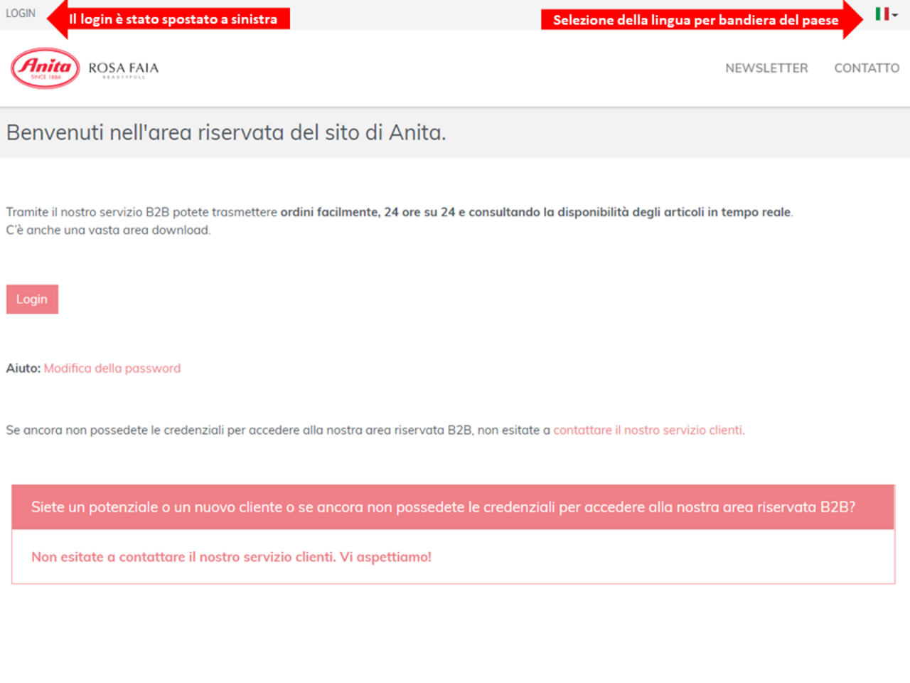 Il pulsante di accesso ora può essere trovato in modo più intuitivo in alto a sinistra, la lingua del negozio viene cambiata usando la bandiera del paese: