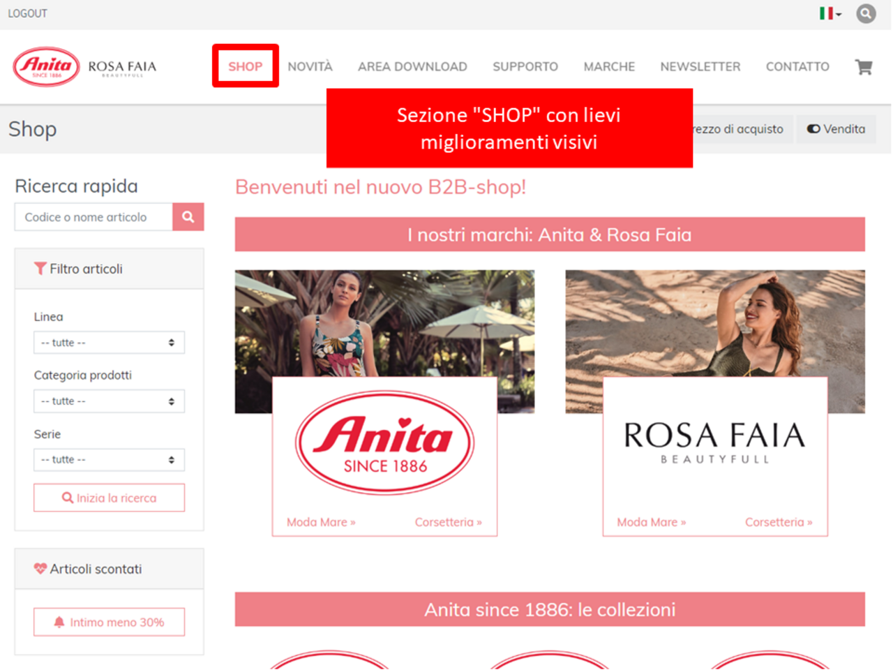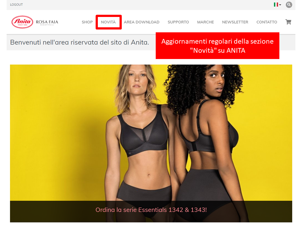 Nell'area "Novità" troverai regolarmente informazioni sui nuovi prodotti in stock (edizioni limitate, aggiunte di colore / taglia), notizie su ANITA, riferimenti a premi, link al blog Anita e alla rivista KONTAKTE: