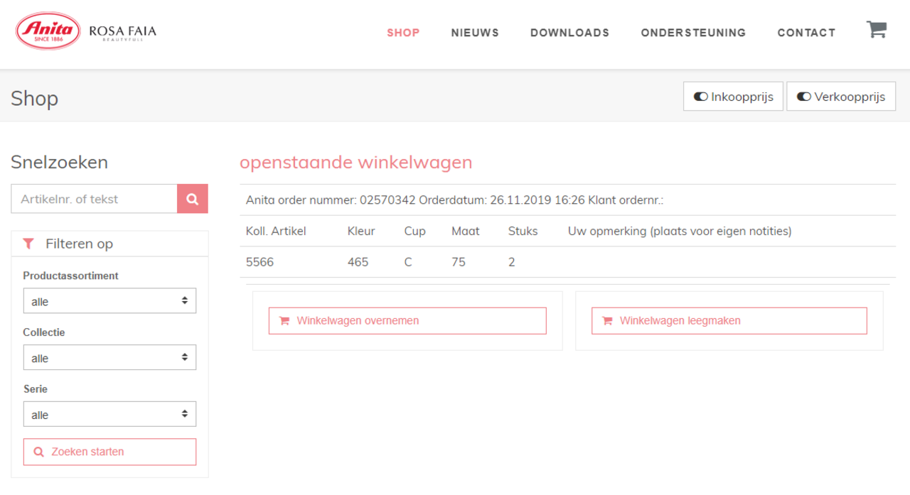 Uw winkelmand wordt nu opgeslagen. Als je je browser onbedoeld sluit of omdat je tijd te kort komt, hoef je het aankoopproces niet te herhalen om je bestelling te bevestigen. De artikelen die in de winkelmand zijn gelegd, worden bewaard. Wanneer je opnieuw inlogt, wordt het open winkelmandje direct getoond.