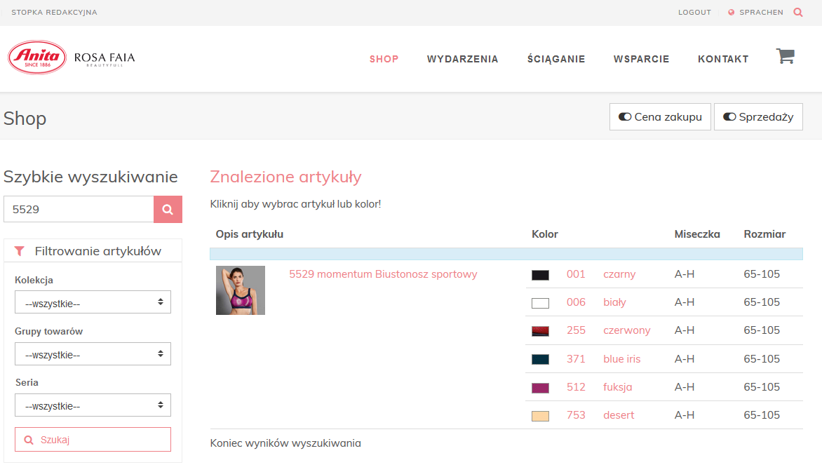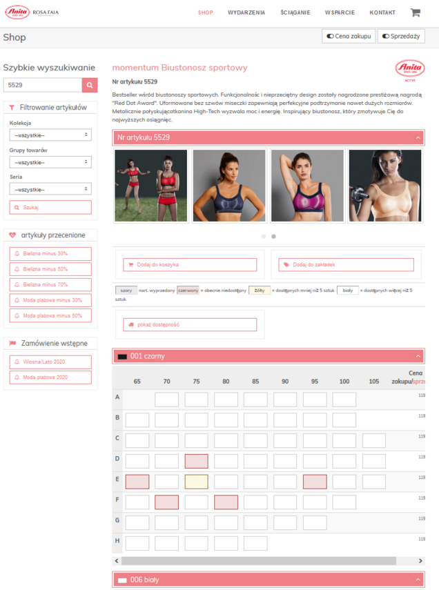 Czerwone kółeczko nad symbolem koszyka w menu na górze po prawej stronie informuje, że w koszyku znajdują się produkty oraz pokazuje ich ilość. Mogą Państwo kontynuować zakupy lub przesłać do nas zamówienie.