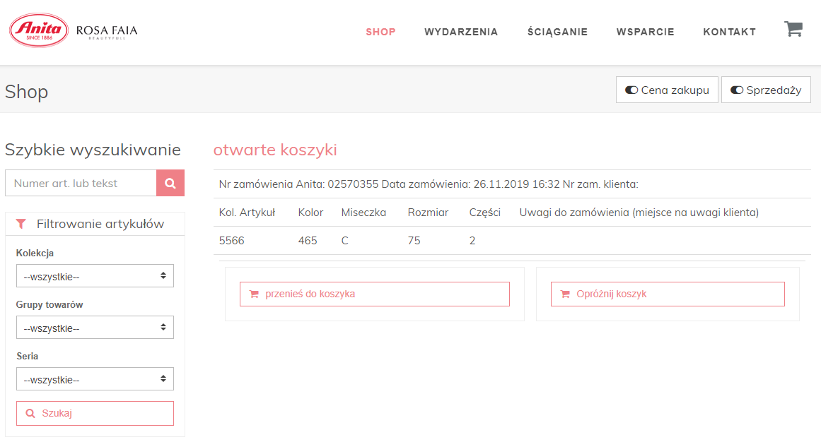 Państwa koszyk jest teraz zapisywany. W przypadku zamknięcia przeglądarki nie muszą Państwo na nowo składać zamówienia. Produkty, które dodali Państwo wcześniej do koszyka zostały zapisane. Po ponownym zalogowaniu na stronie automatycznie pojawi się informacja o otwartych koszykach.